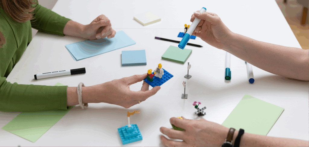 Ich baue auf interaktive Workshops mit einer Kombination aus verschiedenen Methoden. Auf diese Weise können wir Eure Herausforderungen, Potentiale und Bedürfnisse besprechbar, begreifbar und auswertbar machen. Daraus entwickelt sich die Basis, um Eure Transformationsschritte zu planen und im Alltag wirksam zu machen.